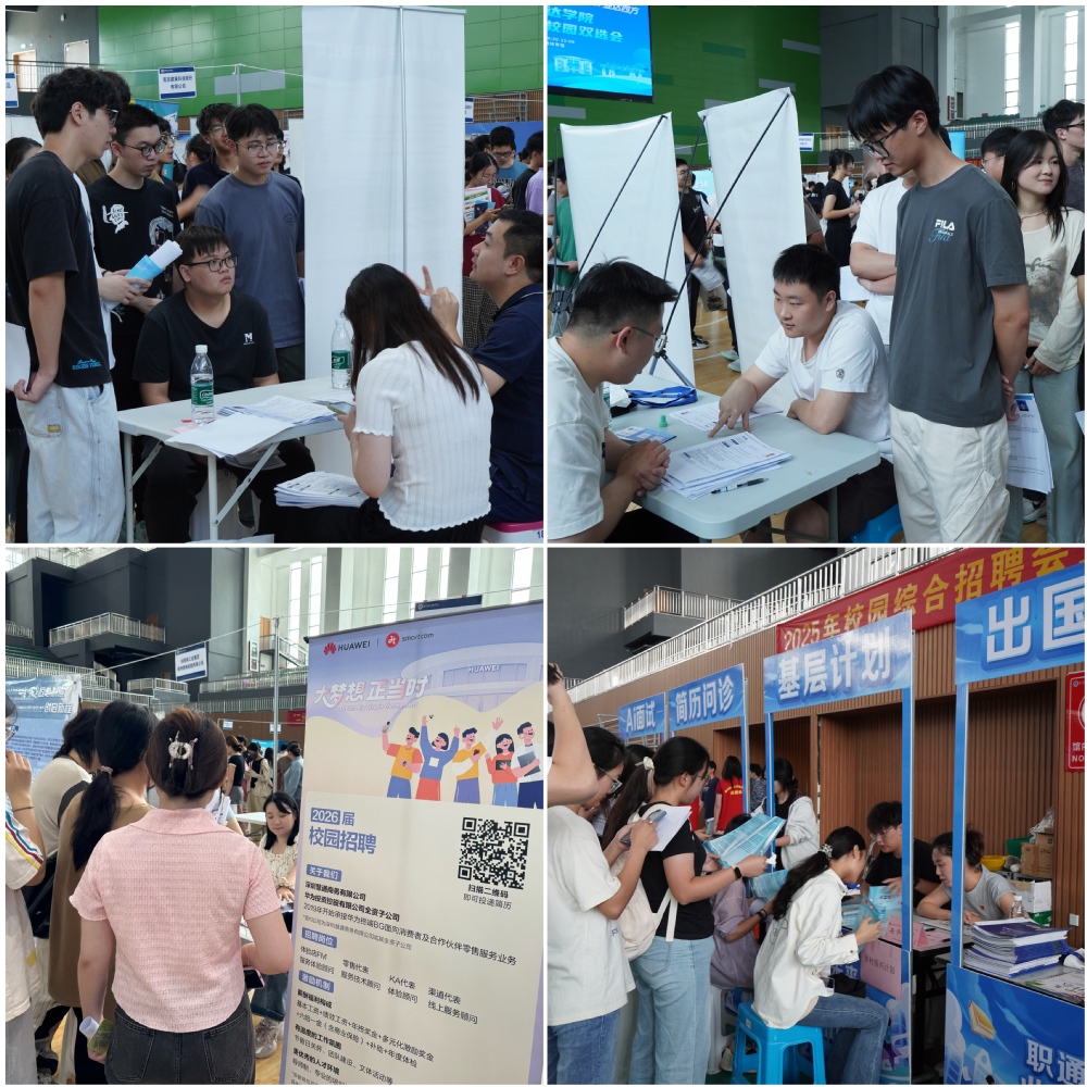 9月19日上午,我院于学院体育馆举办2025年秋季校园综合招聘会暨第二届生涯就业活动月启动仪式。学院党委书记赵允玉、院长沈建华、纪委书记宋健康、党委副书记兼副院长刘伟等院领导在招聘会现场,了解毕业生与用人单位双选情况,指导毕业生就业工作。