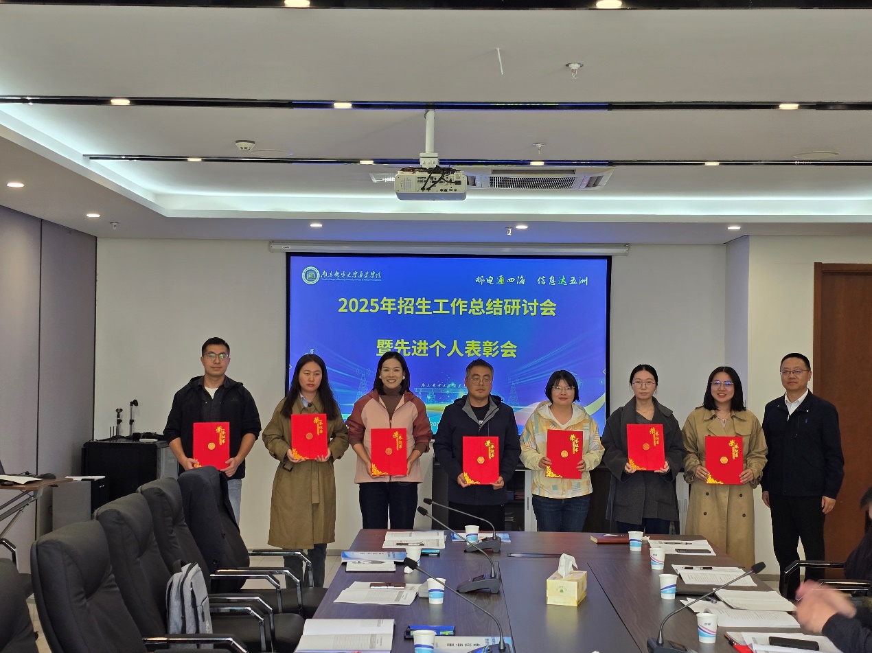 会上,刘伟从基本情况、工作做法、面临形势、存在的困难和工作成效等方面对2025年招生工作进行了总结。赵允玉宣读《关于表彰2025年招生宣传工作先进个人的决定》,沈建华为2025年招生宣传工作先进个人颁奖。招生就业处对2025年招生数据分析报告进行了解读。