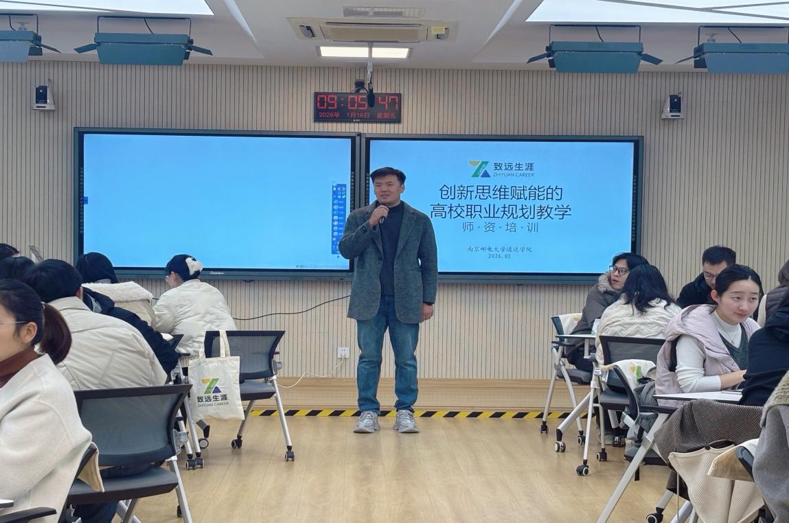 1月17日至18日,学院在扬教1207举办“创新思维赋能的高校职业规划教学”师资培训。本次培训特邀教育部学生服务与素质发展中心特聘专家、致远生涯研究院院长吴沙担任主讲。学院党委副书记兼副院长刘伟、全体辅导员及任课教师共60多人参加。