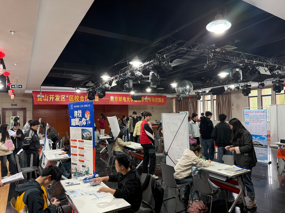 4月22日上午,南京邮电大学通达学院昆山开发区专场招聘会在大学生活动中心二楼招聘大厅举行。学院党委副书记、副院长刘伟,昆山开发区人力资源和社会保障局、学院招生就业处及各二级学院相关负责人,2026届全体毕业班辅导员及150余名毕业生参加活动。